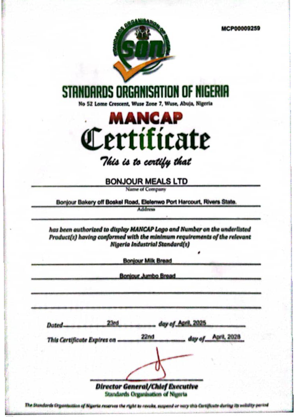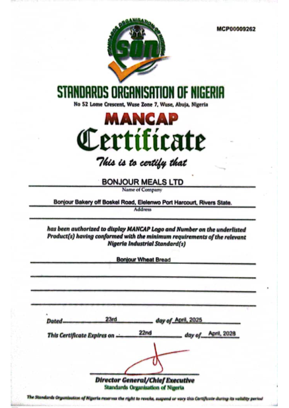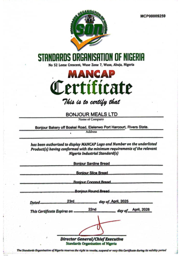 Bonjour Meals Limited (BML) is one of the leading companies in the bakery and fast-food industry in the Niger Delta, with its head office located in Port Harcourt, Rivers State, Nigeria.